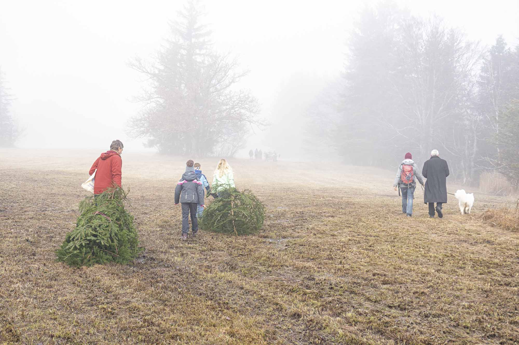 Deshalb ist unser Ausflug im Morgennebel über verschlungene Pfade durchs Moor, wo sich jeder seinen Lieblingsbaum aussuchen und selbst fällen konnte, fast schon Tradition…