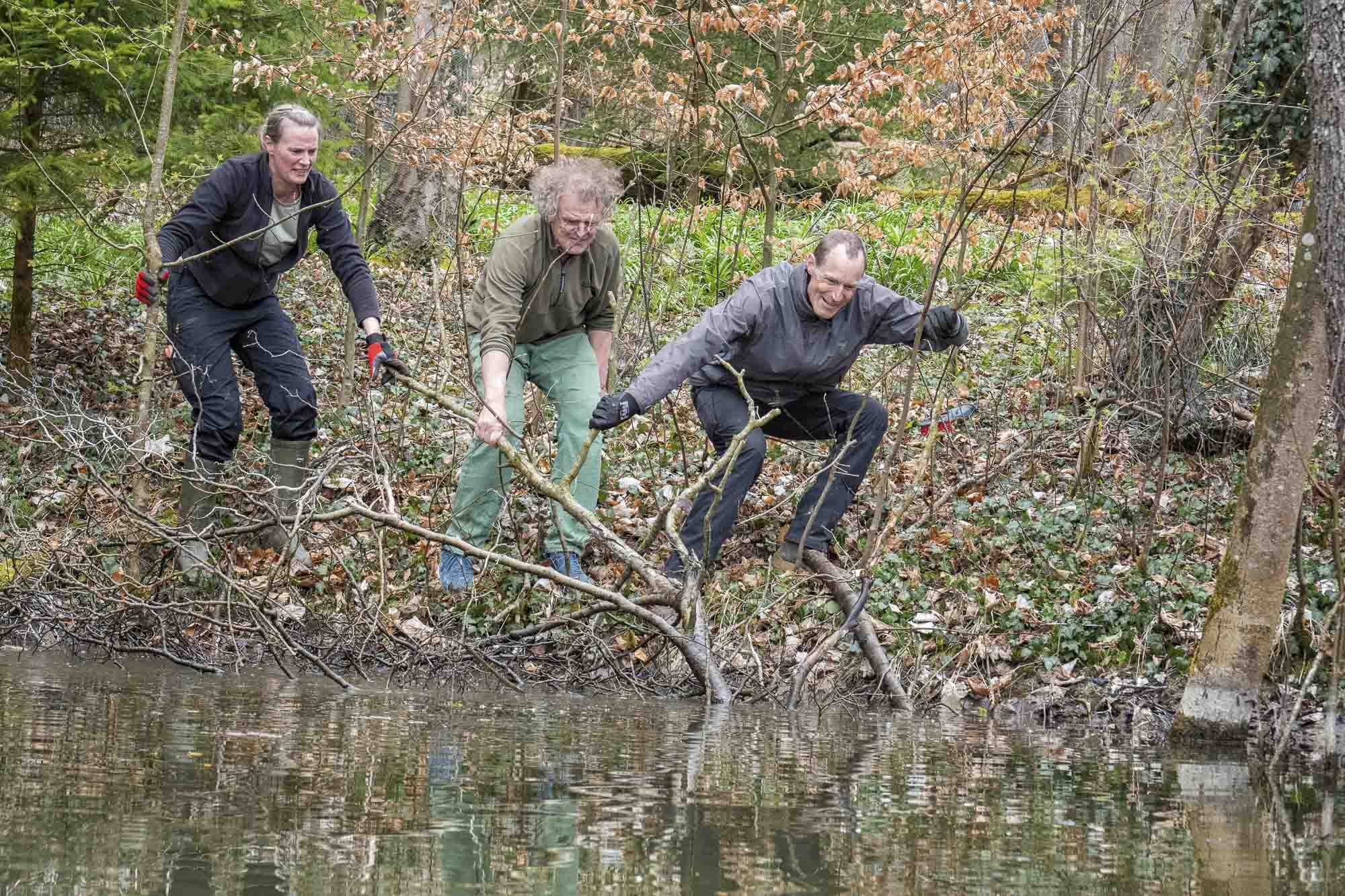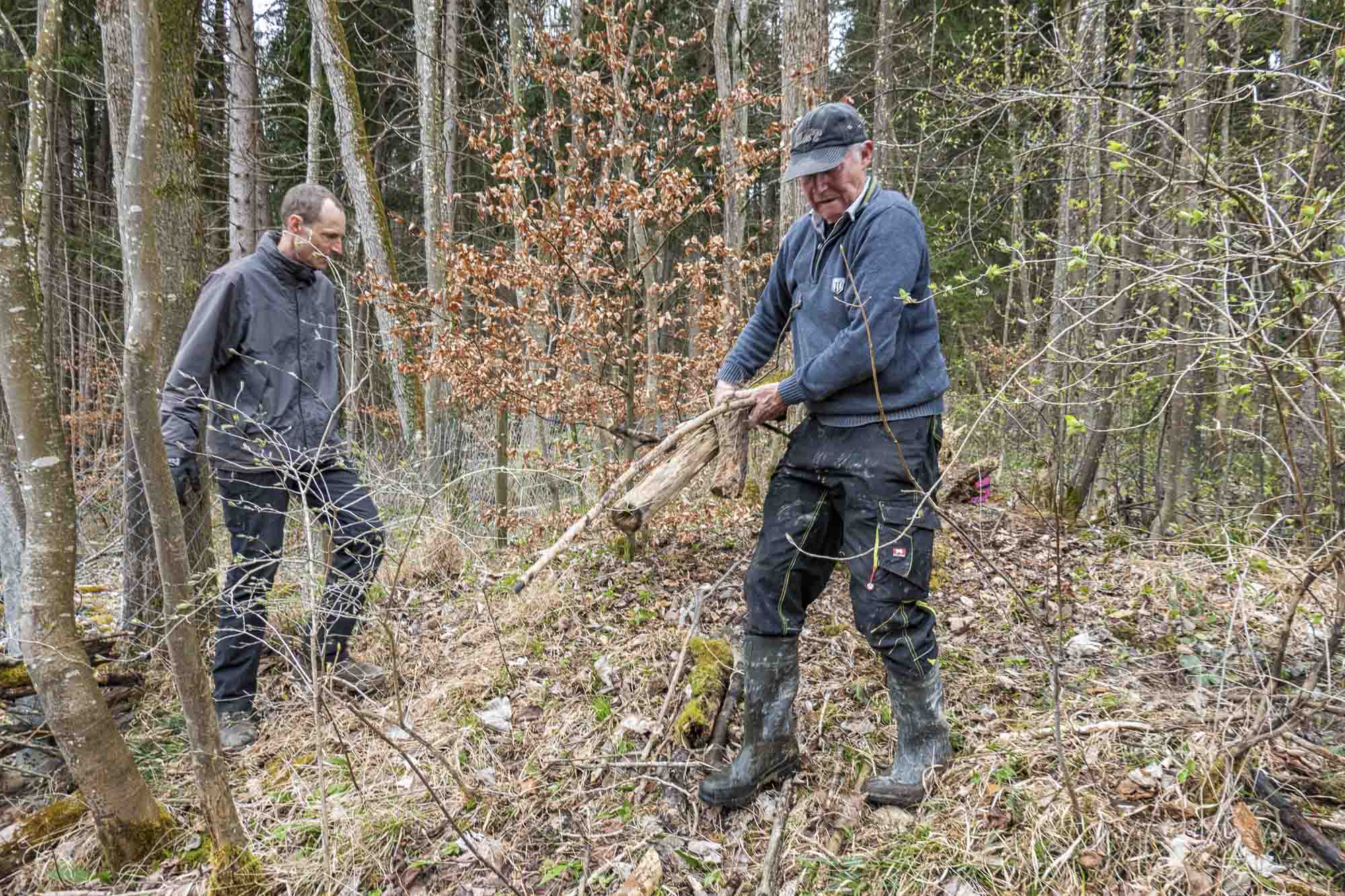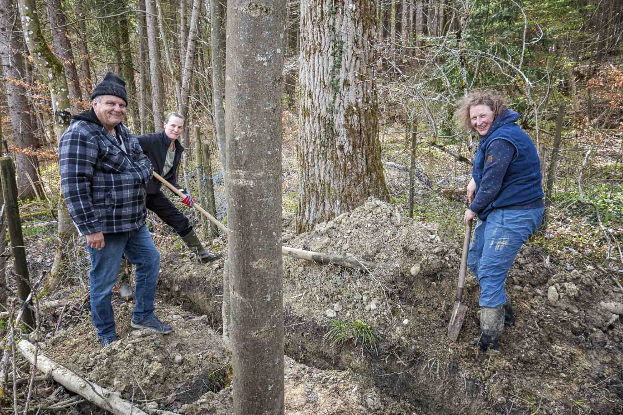 Ein weiterer Arbeitseinsatz am Teichgrundstück. Dank vieler Helfer*innen ging richtig was voran: Während das "Team Graben” die Überlaufrohre für den Teich verlegt und den Graben verfüllt hat, machte sich das “Team Benjeshecke” daran, Pfosten anzuspitzen, einzuschlagen und mit Astschnitt zu füllen. So konnte die Lücke im Zaun geschlossen werden, Schnittgut findet hier auch in Zukunft einen Platz und allerhand Tiere ein Zuhause.
