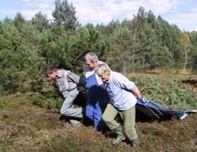 Da haben sich wohl manche Spaziergänger, die bei dem herrlichen Herbstwetter im Hardt zwischen Weilheim und Magnetsried unterwegs waren, wohl die Augen gerieben: Ein ganzer Trupp zieht durch das Moos, "schwer bewaffnet" mit Motorsäge, Axt, Handschuhen und einer großen Plane. "Macht ihr jetzt die schöne Natur kaputt?", hat da so mancher ausgerufen. Doch genau das Gegenteil ist der Fall: Um zu verhindern, dass die wertvollen Moorflächen vollends mit Kiefern, Birken oder Fichten zuwachsen, müssen sie gepflegt werden - die Bäume werden entnommen, damit Torfmoos, Heidekraut und Moosbeere weiterhin dort wachsen und Tiere wie Libellen oder Kreuzotter sich wohl fühlen können.