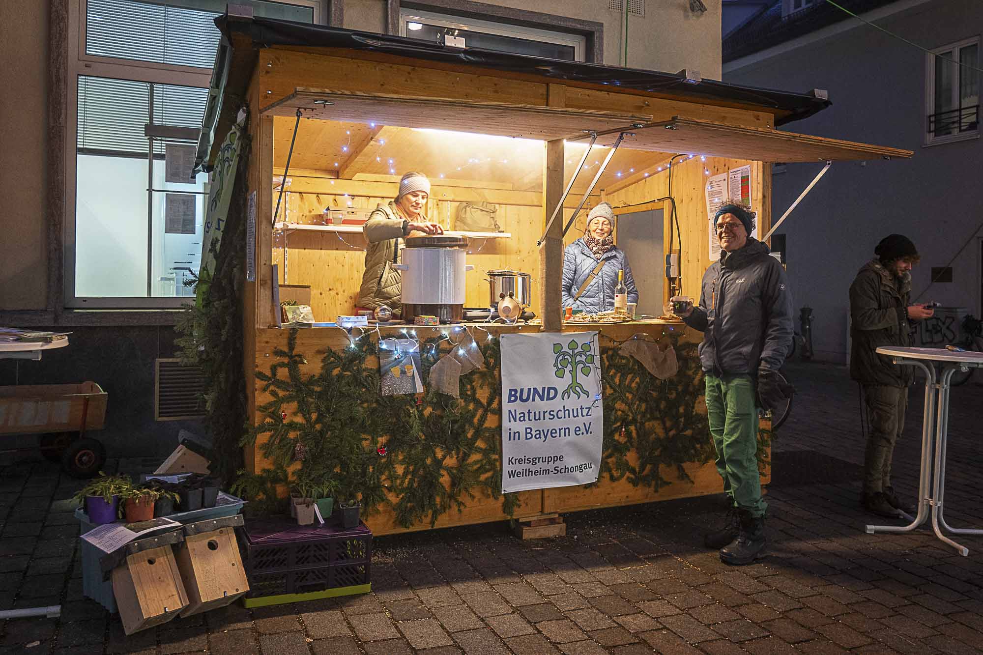 Der Jahresausklang am Glühweinstand der Weilheimer Ortsgruppe hat beinahe schon Tradition. Neben den kulinarischen Angeboten gibt es wieder viele Informationen rund um den Naturgarten